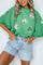 Sequin Clover Graphic Ruffled Trim Bell Sleeve St Patrick Blouse