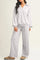 This pullover top features polo collar and V-neck combine preppy and casual styles. Matching drawstring sweatpants offer complete comfort with adjustable waist fit. Coordinated set provides effortless styling for relaxed yet put-together looks.