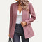Striped Pattern Mock Neck Open Front Long Sleeve Blazer in Plum